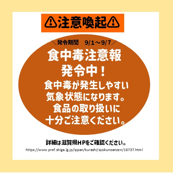 \注意喚起/ 食中毒注意報が発令されました(9/1~9/7)