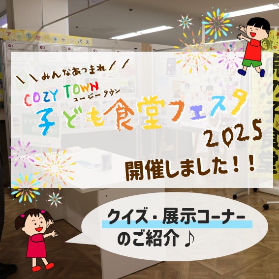 8/30(土)「みんなあつまれ!COZY TOWN子ども食堂フェスタ2025」を開催しました! 【クイズ・展示コーナーご紹介ご紹介】*—-*—-**—-*—-**—-*—-*