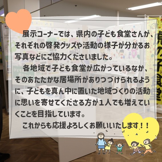 <展示物のご提供にご協力いただいた子ども食堂の皆さん> ・おっちゃんのおむすび商店 ・虎の子食堂 ・きのもと子ども食堂 ・なかのごはん ・のぞみ子ども食堂 ・はちまん子ども食堂————————————-