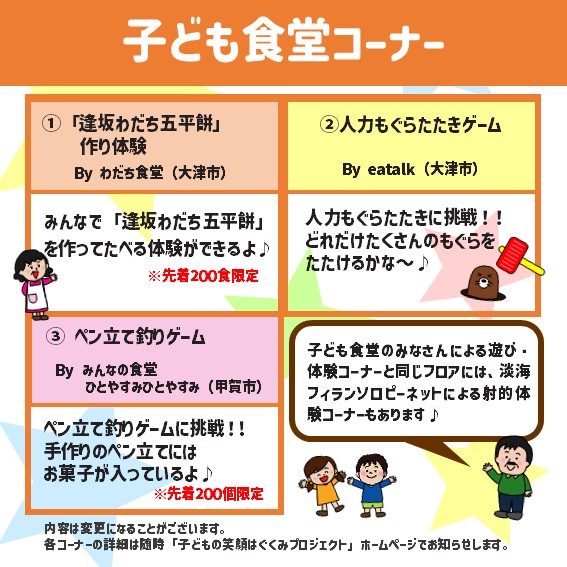滋賀県内の子ども食堂の取り組みをひろく知っていただく機会として、そして、子どもから大人までさまざまな人が交流する機会として開催する「子ども食堂フェスタ2025」!たくさんの企業や団体のみなさまにもご協力いただいて、開催しています★