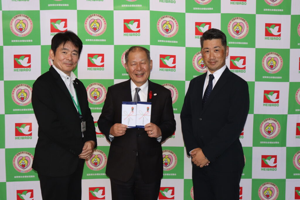 2025年10月23日、 株式会社平和堂様より店頭募金755千円、公益財団法人平和堂財団様より3,500千円を平和堂商品券として、子ども食堂等の子どもを真ん中に置いた地域づくりの活動にご寄付をいただきました。株式会社平和堂様は、“子どもの笑顔”のスポンサー第1号として、2017年(平成29年)より長年サポートいただいており、店頭募金は、お客様や従業員の皆さまからご協力いただくなど、地域の皆さまへのご理解ご協力をひろげていただいております。また、公益財団法人平和堂財団様には、支援強化として、本年度より協働によるサポートをいただいております。